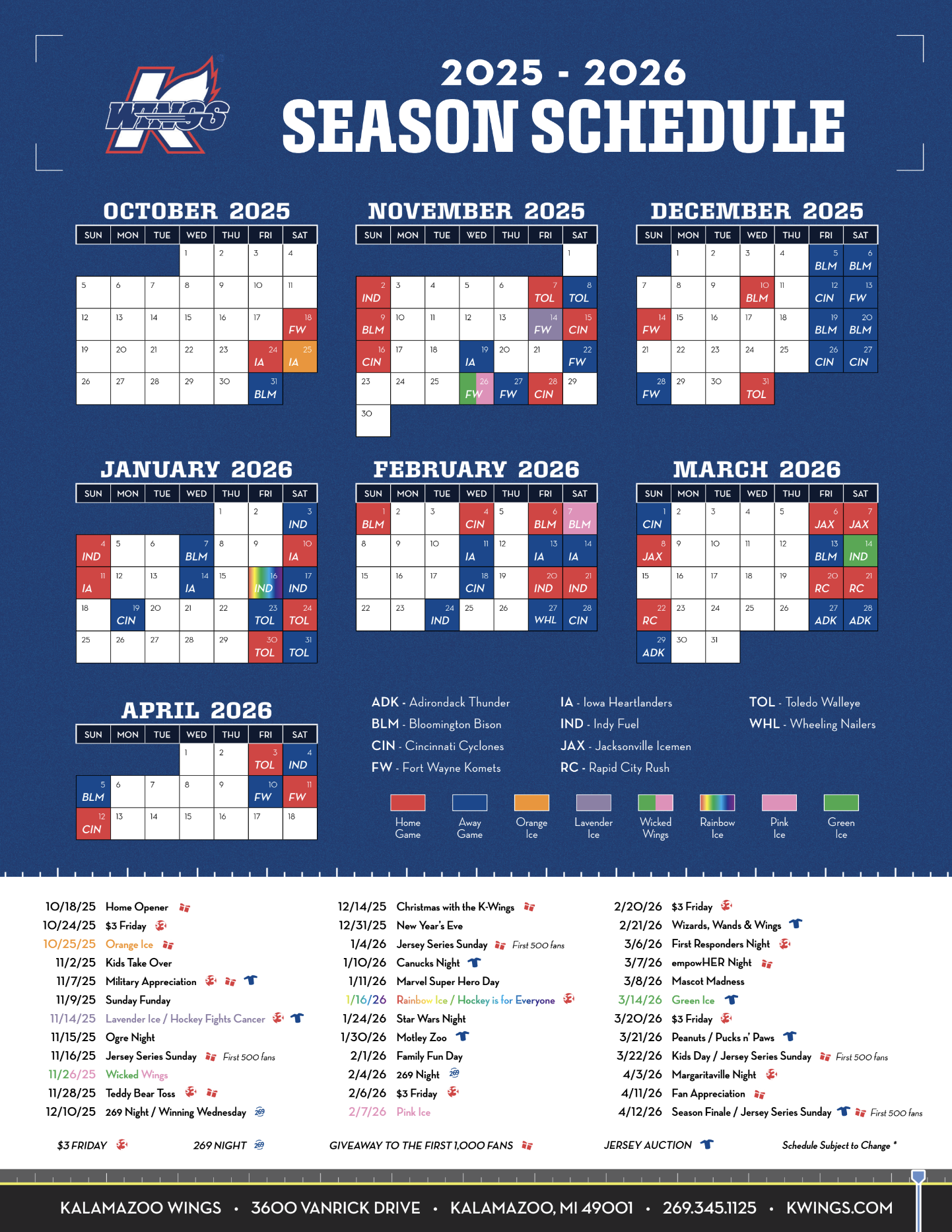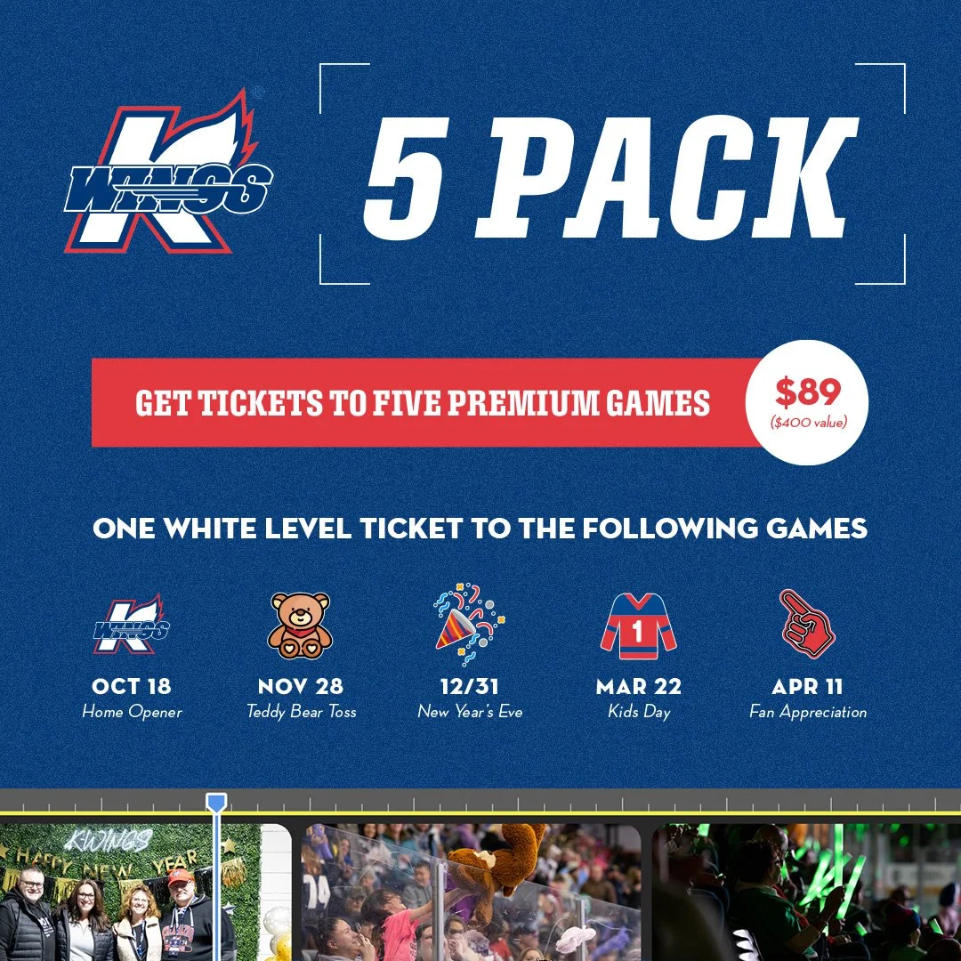 For 7 hockey seasons I have provided creative direction through a distinctive design aesthetic that sets the Kalamazoo Wings apart. For the 2025–2026 season, I introduced the “Through the Lens” campaign, a deliberate shift toward authentic, fan-focused storytelling. Moving away from overly designed graphics, this season’s look leans on high-impact photography and simplified messaging to capture the energy, emotion, and atmosphere of a K-Wings game, as seen through the eyes of the fans who make it all possible.